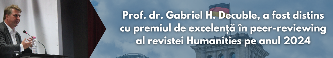 Prof. dr. Gabriel H. Decuble, de la Departamentul de Limbi și Literaturi Germanice al Facultății de Limbi și Literaturi Străine, a fost distins la începutul lunii mai 2025 cu premiul de excelență în peer-reviewing al revistei Humanities pe anul 2024 (Outstanding Reviewer Award).