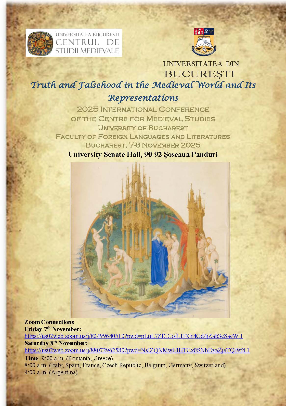 The Centre for Medieval Studies at the University of Bucharest was accredited by decision of the Senate of the University of Bucharest on July 16th, 2006. Its members are professors, researchers and PhD students specialized in philology, history, philosophy and art history.