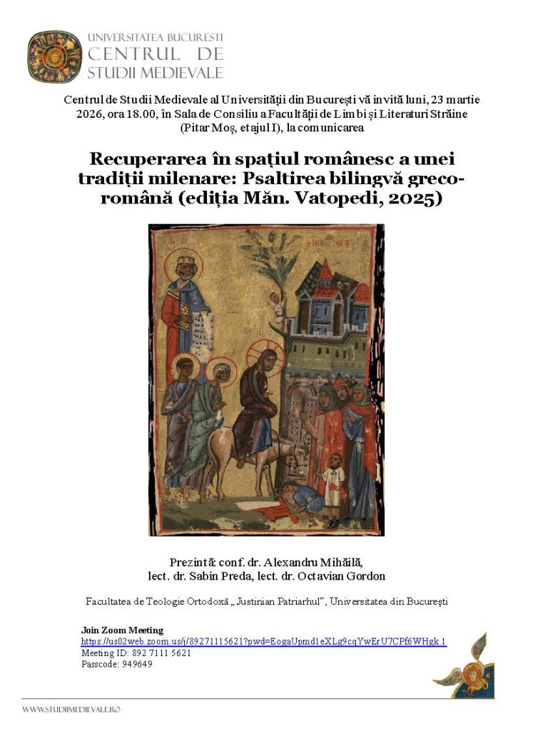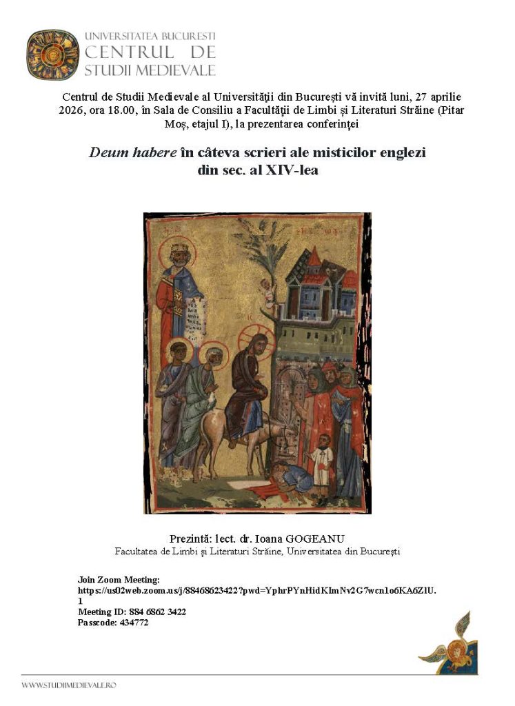 The Centre for Medieval Studies has carried out several interdisciplinary research programs that have resulted in conferences and in the publication of the proceedings in the “Mediaevalia” collection at the Bucharest University Press publishing house.